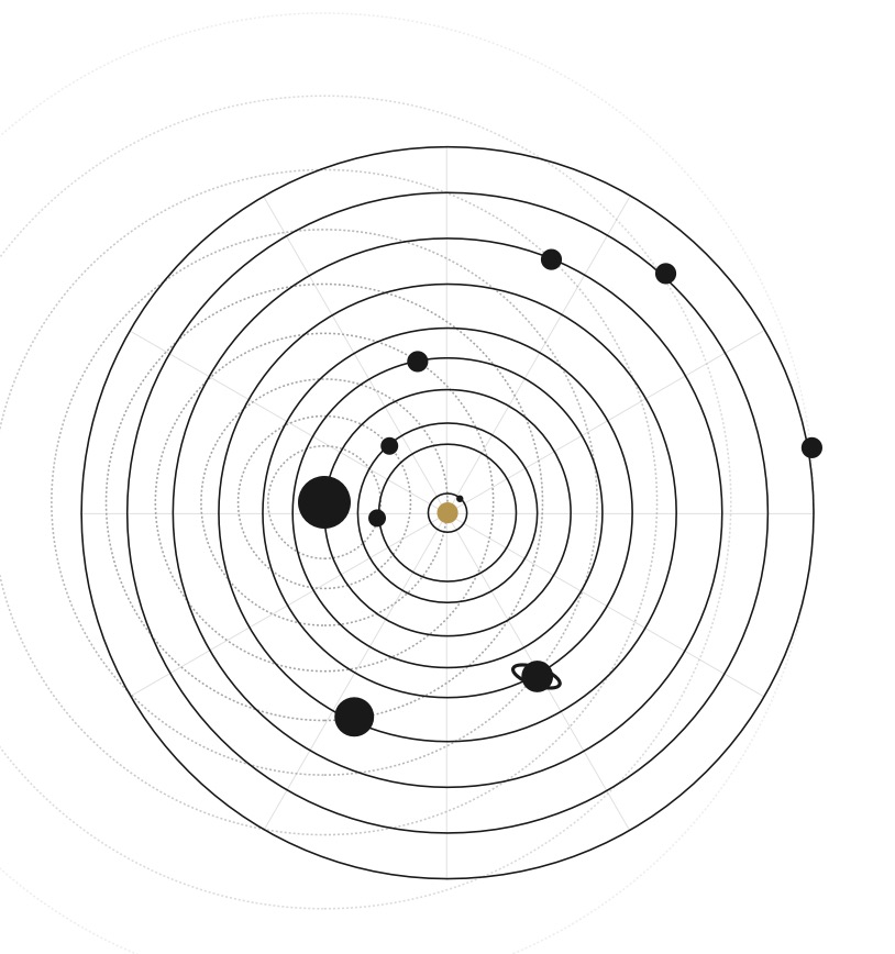 Die Planeten des Sonnensystems, einschließlich der Erde, drehen sich um die Sonne. Für astrologische Zwecke wird die Erde jedoch als die zentrale Kraft in einem persönlichen Horoskop betrachtet, die anderen Planeten drehen sich in verschiedenen zyklischen Bewegungen um uns herum.